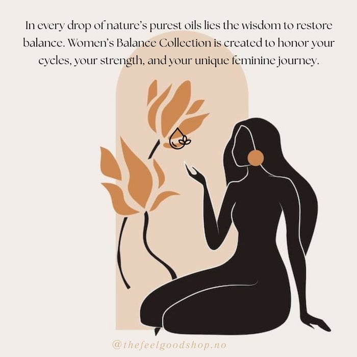 Vår Women’s Balance Collection er skapt for å hedre og støtte kvinnens naturlige rytmer. Med nøye utvalgte eteriske oljer fra naturen støtter vi hormonell balanse, emosjonell styrke og velvære gjennom alle livets faser – fra menstruasjon til overgangsalder. Hvert produkt er designet som et lite rituale, for å gi magiske øyeblikk av ro, styrke og tilhørighet i hverdagen.