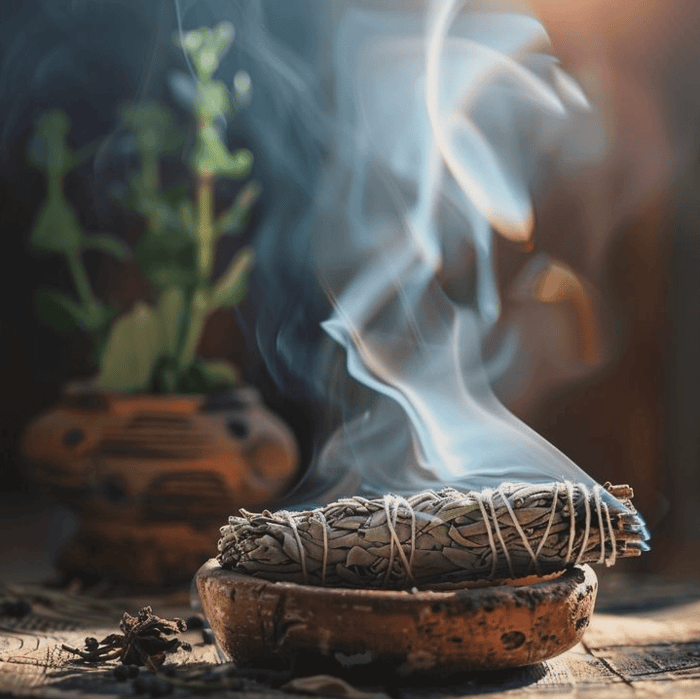 Rens energien – Tenn en hvit salvie eller palo santo, eller bruk vårt Purify Kit, for å rense både rommet og energien din.