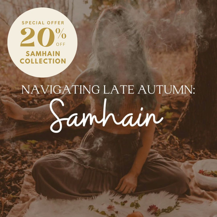 En hyllest til overgangen mellom lys og mørke, høst og vinter, avslutning og ny begynnelse. Samhain markerer slutten på høstsesongen og starten på vinteren – en tid for å gi slipp, reflektere og ære syklusen av liv, død og gjenfødelse. Vår Samhain-kolleksjon er skapt for å støtte deg i denne magiske overgangsfasen – med duftende røkelser, beroligende oljer og beskyttende smykker og krystaller som hjelper deg å rense, gi slipp og skape rom for det nye.