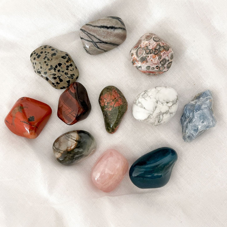 Tromlede steiner er små, avrundede, blankpolerte biter av bergarter og mineraler. De er laget ved å plassere grove steiner i en maskin som tromler dem til kantene og overflatene er glatte og polerte.