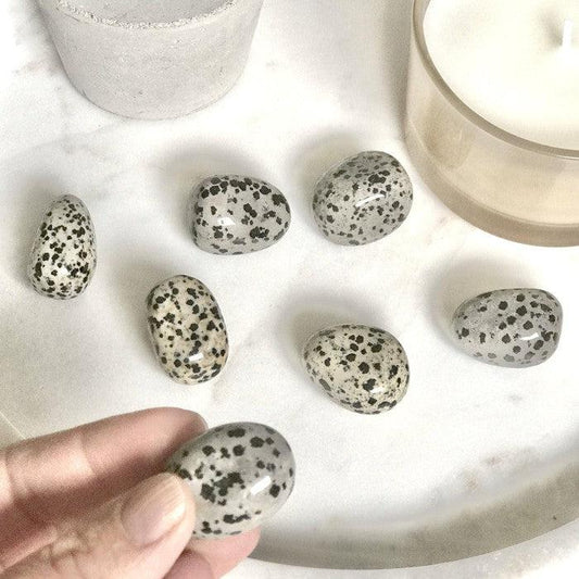 La deg fortrylle av våre vakre tromlede steiner – små, glitrende skatter skapt av naturens eldgamle visdom.