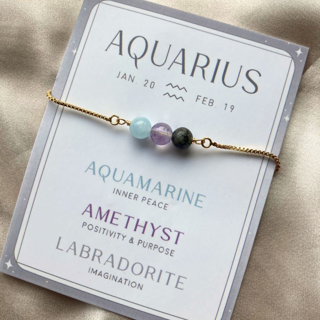 Krystallarmbånd for stjernetegnet vannmannen kommer med tre utvalgte steiner. Krystallene er valgt ut for å forsterke og støtte personligheten og egenskapene til vannmannens tegn.