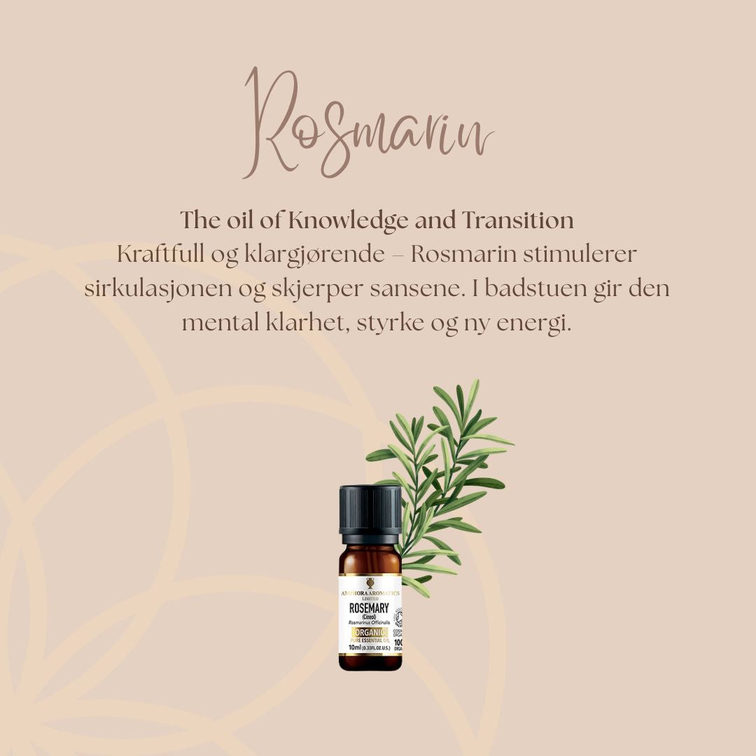 🌿 Rosmarin – stimulerende og oppkvikkende, fin for sirkulasjon og klarhet.
