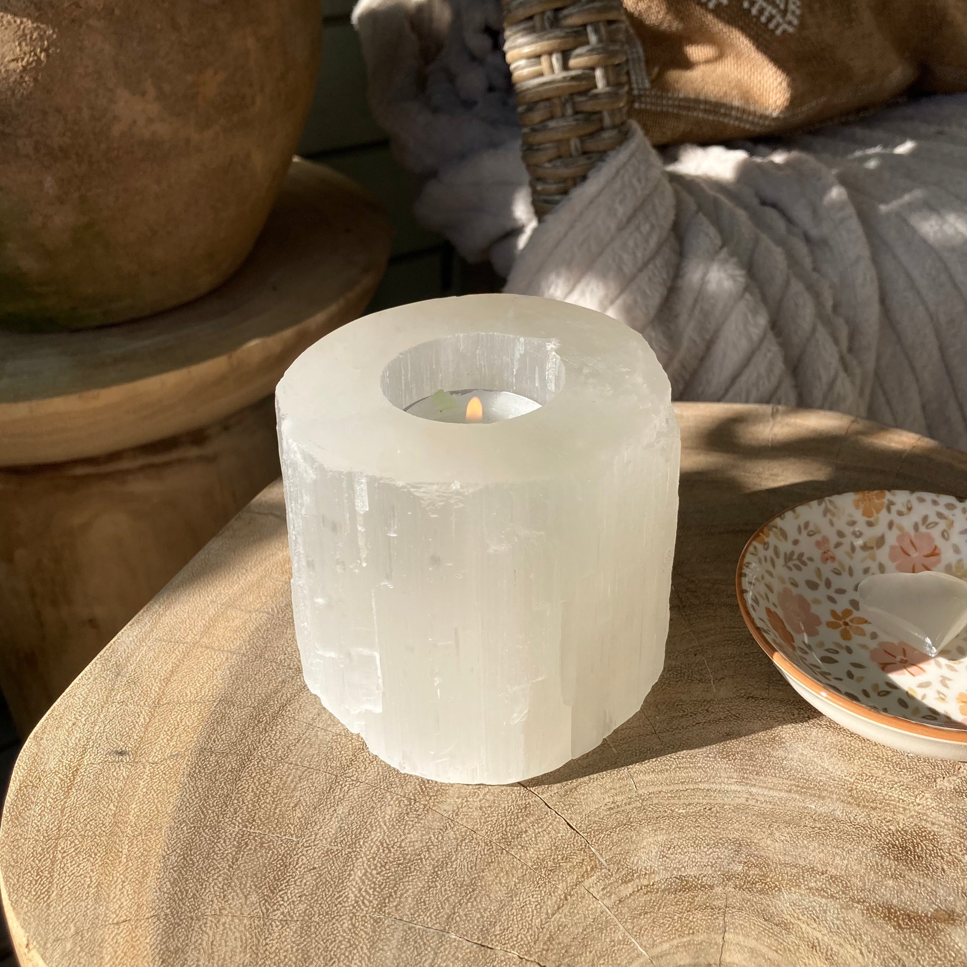 En vakker lykt i rå selentitt som er perfekt til å pynte opp i hjemmet eller bruke under ritualer.